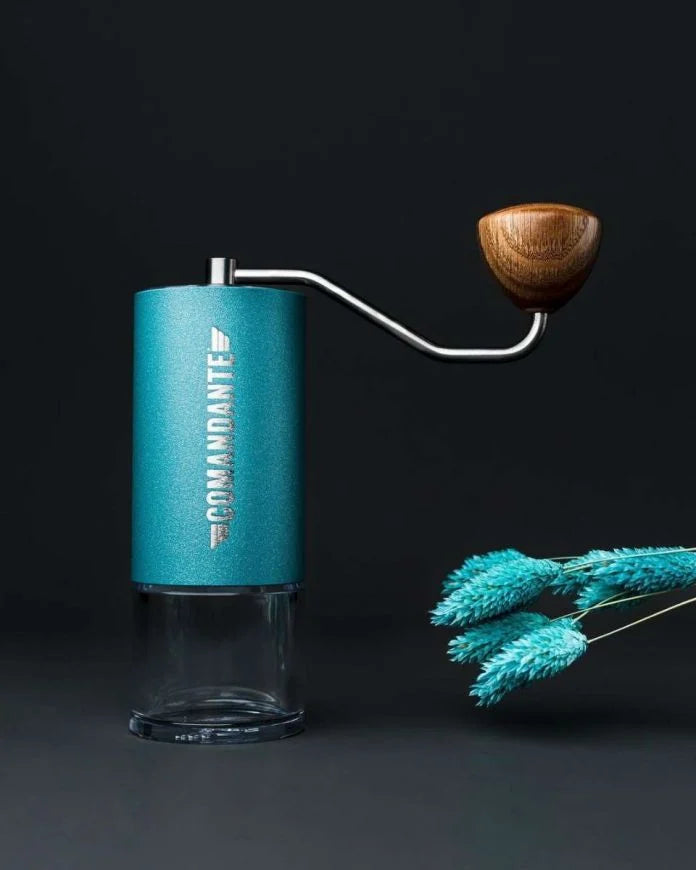 الاصدار الجديد من طاحونة القهوة كوماندانتي وصلكم ! متوفر الان باللون المميز تركوازي مستوحى من طبيعة جبال الالب والبحر او