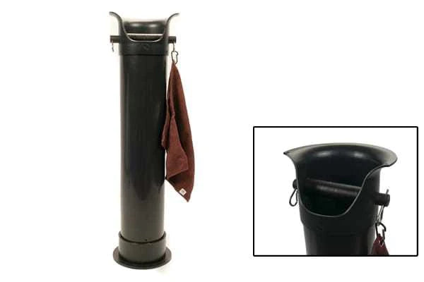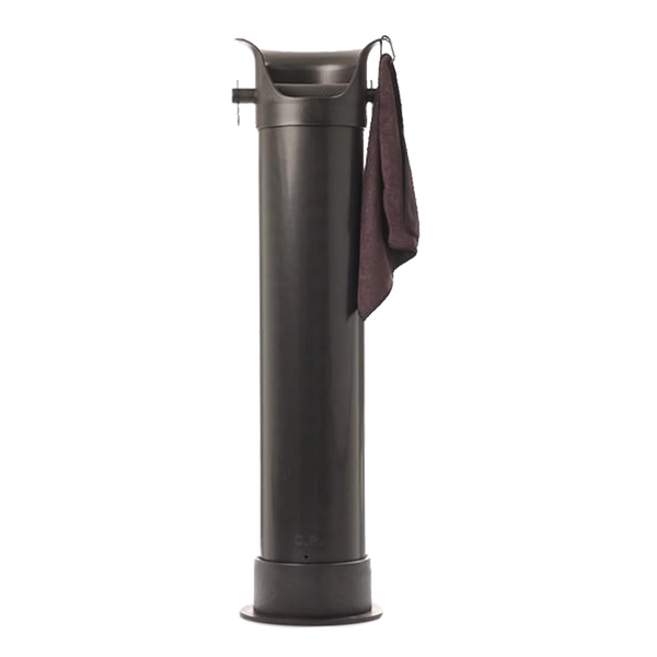 A sturdy commercial knock bin standing at 860mm tall. Separates into three parts for easy cleaning, and includes a barista cloth that attaches to either side of the knock bin via the carabiner hook. Small vents at the base of the knock bin prevent a vacuum from forming when a plastic bag has been placed inside