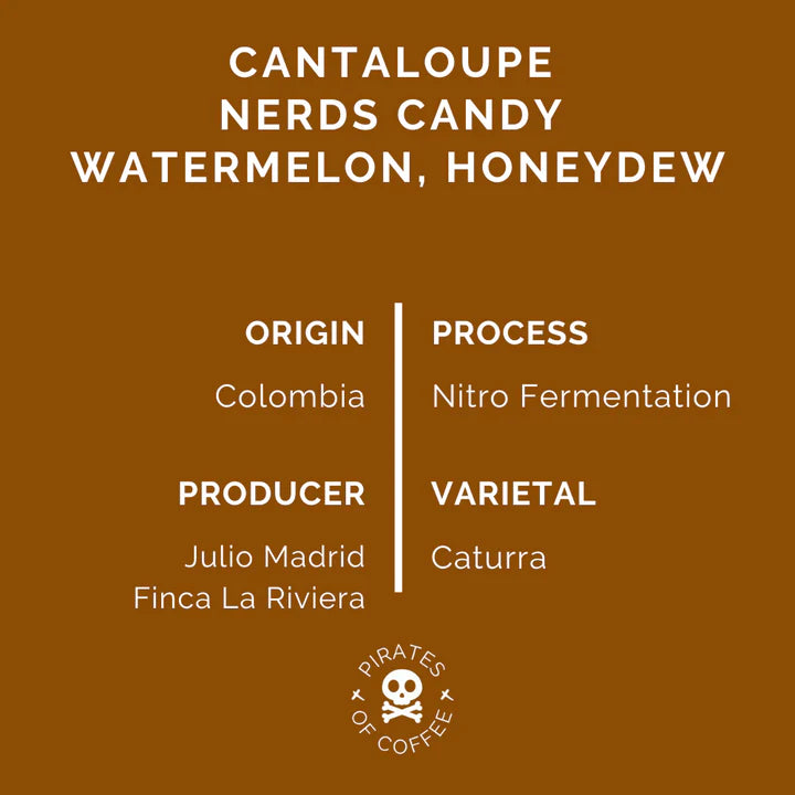 Melonhead Nitro is crafted by Julio Madrid at La Riviera Farm in Risaralda, Colombia. This is the 3rd year that we’ve had this melon-forward gem in our lineup.