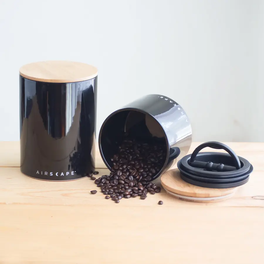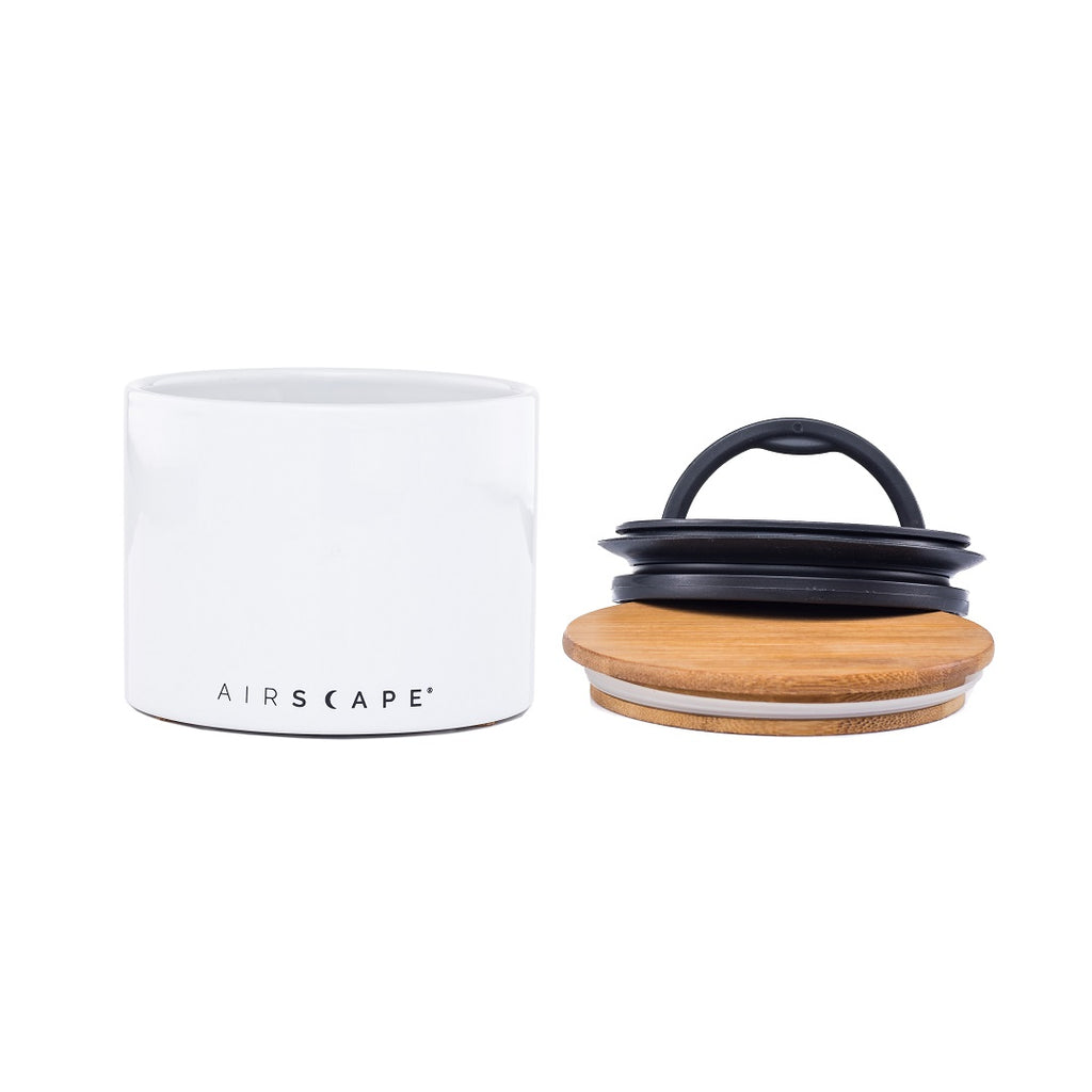 Introducing the Airscape® Ceramic Coffee Canister: the perfect blend of style and functionality to elevate your coffee storage experience. Crafted with meticulous attention to detail, this canister keeps your coffee fresh and adds a touch of elegance to your kitchen countertop. The ceramic coffee canister boasts a seamless fusion of form and function. Its airtight seal ensures that your coffee remains at its peak flavor by protecting it from moisture, light, and air. The high-quality ceramic material offers excellent insulation, safeguarding the beans from temperature fluctuations that can compromise taste. This canister’s elegant design, featuring a smooth matte finish and a secure bamboo lid, not only exudes sophistication but also complements any kitchen décor.