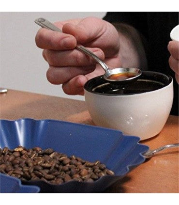 This cupping spoon also meets SCA Standards, holding 0.135-0.169 fluid ounces / 4-5ml of coffee sample and is made from non-reactive metal. Pairs perfectly with the Rhino Cupping Bowl.