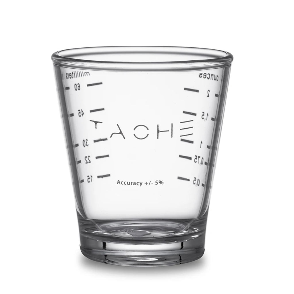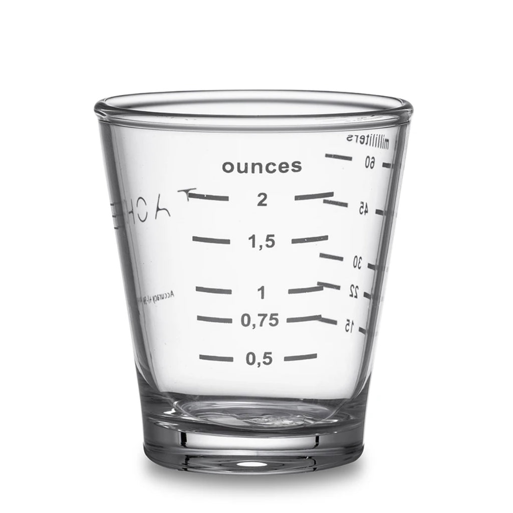 كوب زجاجي متين لقياس كمية الأسبريسو المطلوبة، ويتميز بأنه يحافظ على السطح الخارجي بدرجة حرارة مناسبة للمس.