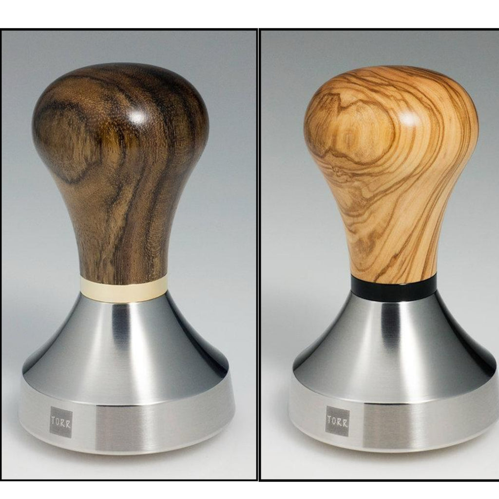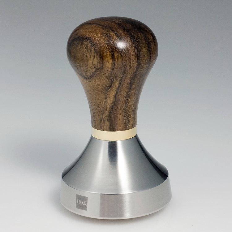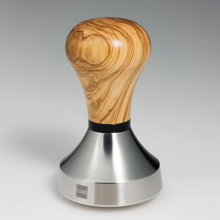 Stainless steel ø 58.80 mm / 35 mm trapeze sharp edge concept with a heavy full metal base. Hand-polished semi-matte finish and black TORR logo. Handmade wooden handles - high gloss polished with natural wax. Used with GF wooden + 5mm spacer/washer to set the right height. External M12 thread. Special piston design for extraordinary feel which fits comfortably in the hand. Sharp edge concept to get best tamping results and extraction.