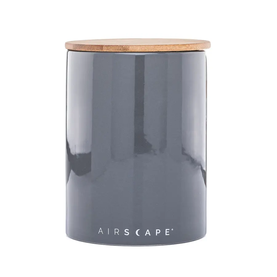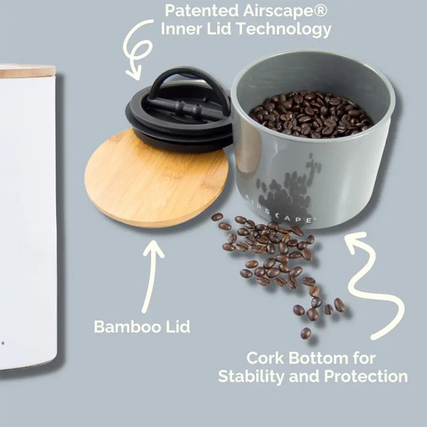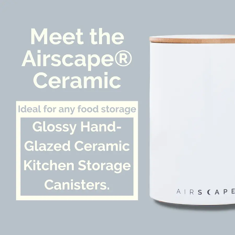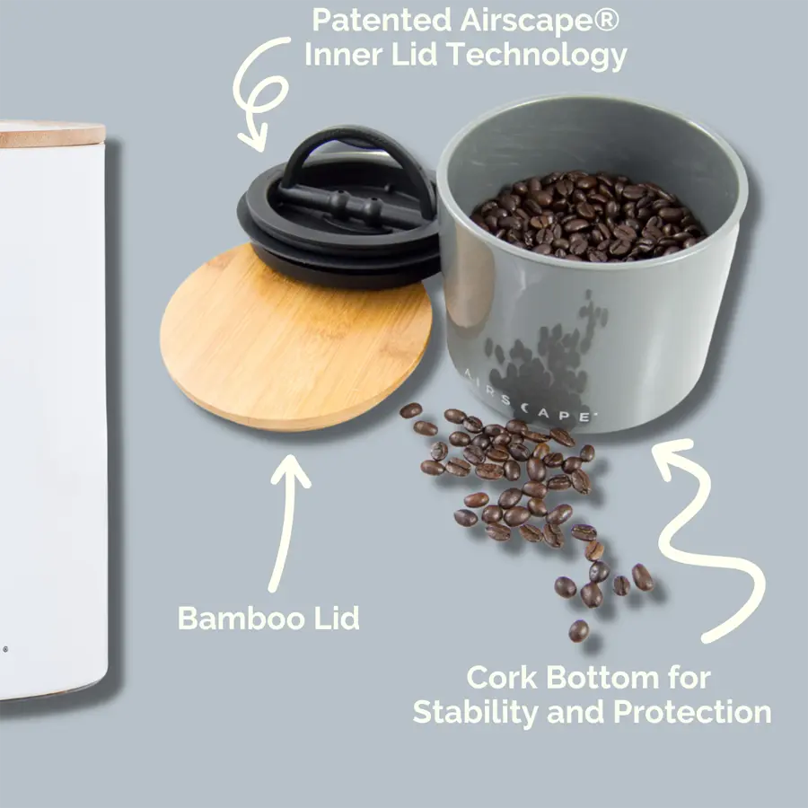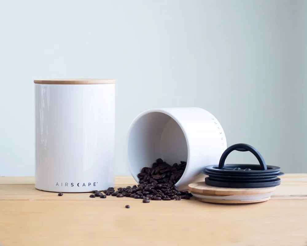 Introducing the Airscape® Ceramic Coffee Canister: the perfect blend of style and functionality to elevate your coffee storage experience. Crafted with meticulous attention to detail, this canister keeps your coffee fresh and adds a touch of elegance to your kitchen countertop. The ceramic coffee canister boasts a seamless fusion of form and function. Its airtight seal ensures that your coffee remains at its peak flavor by protecting it from moisture, light, and air. The high-quality ceramic material offers excellent insulation, safeguarding the beans from temperature fluctuations that can compromise taste. This canister’s elegant design, featuring a smooth matte finish and a secure bamboo lid, not only exudes sophistication but also complements any kitchen décor.